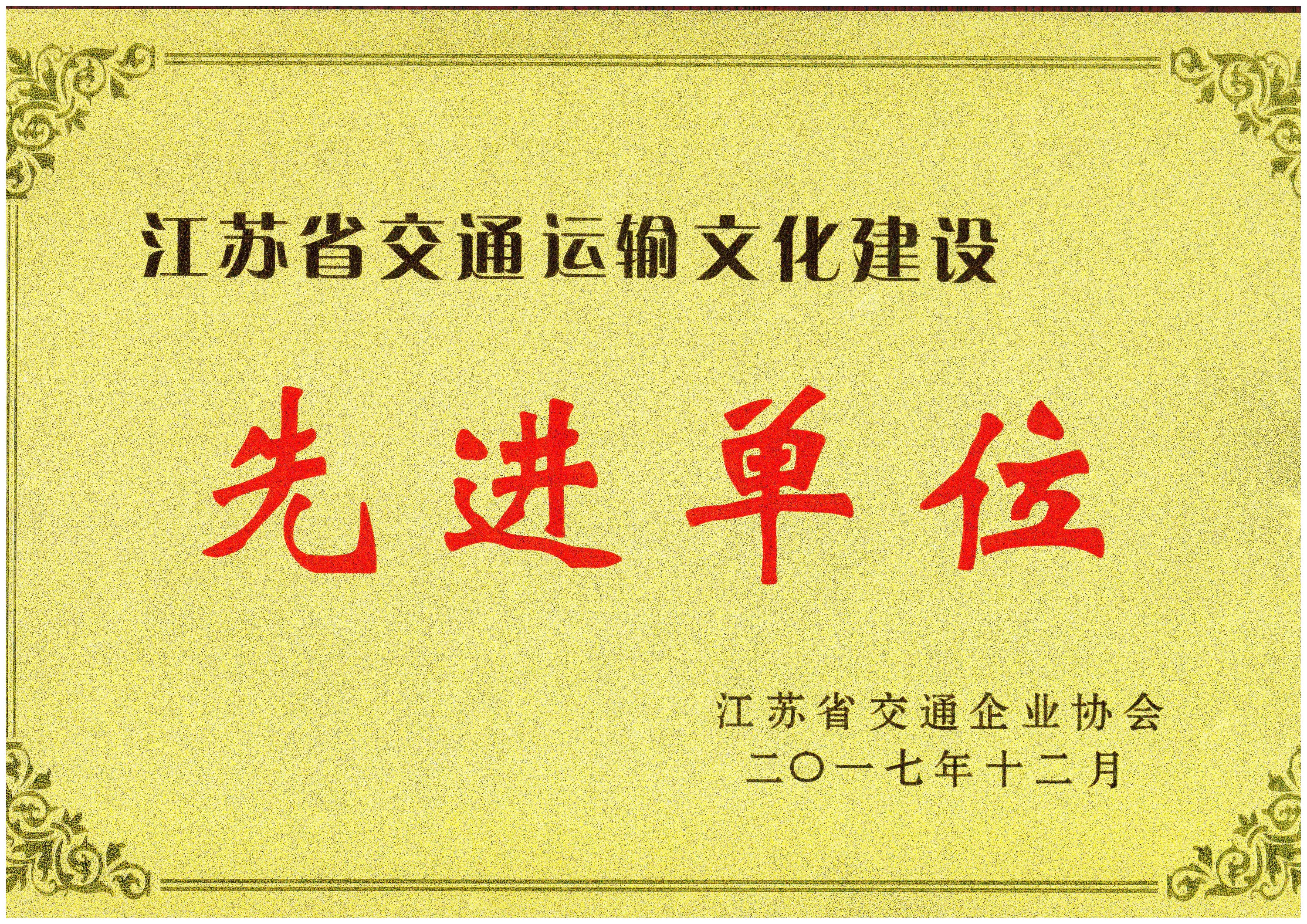 星空官方端网站登录入口荣获“2017年度江苏省交通运输文化建设先进单位”称号